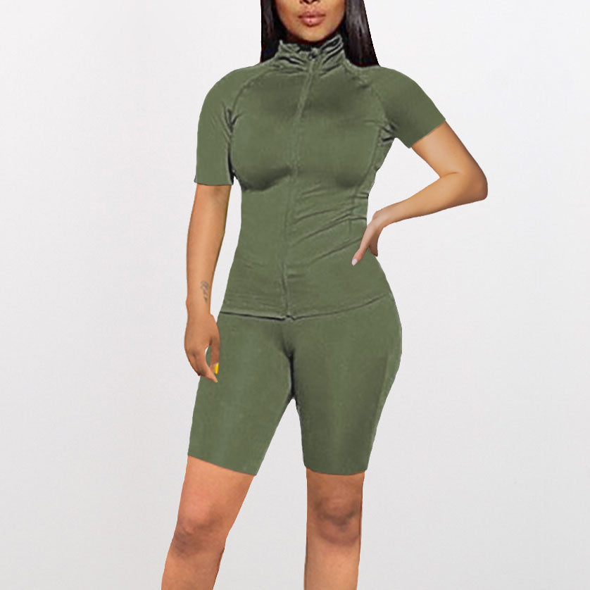X00417S 2021 fashion women outfit two-piece multi-color short track suit