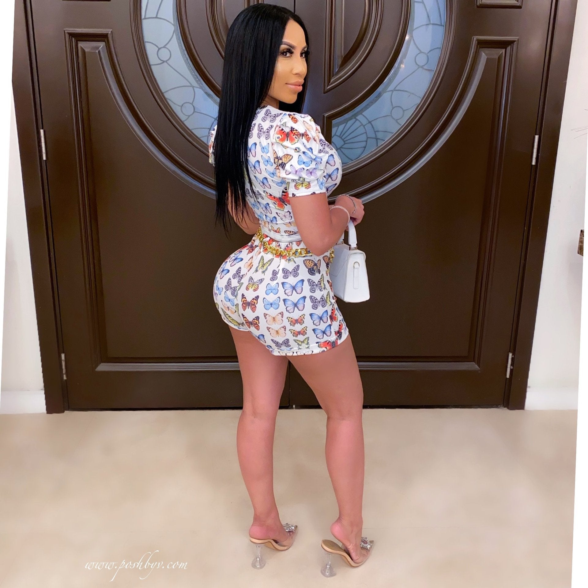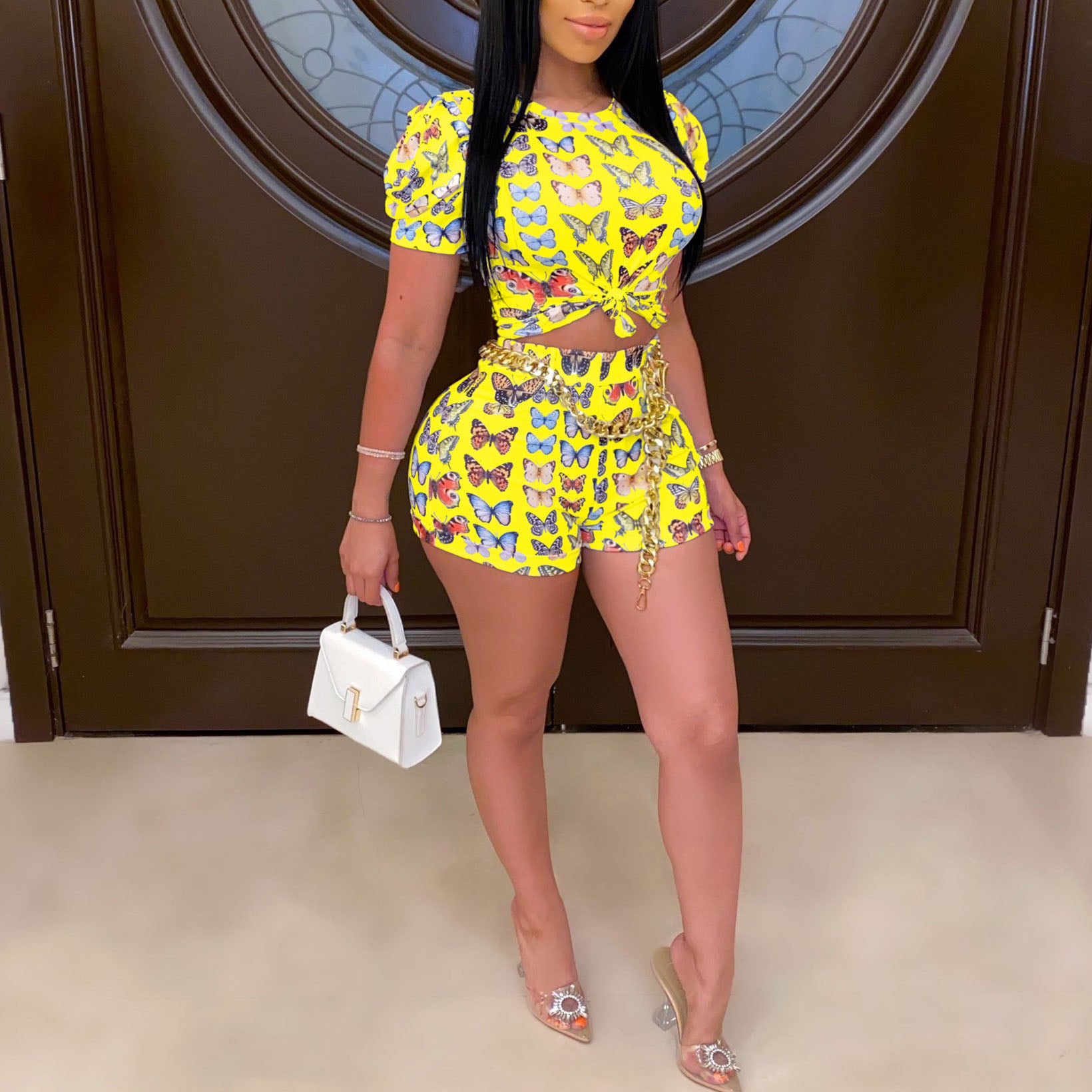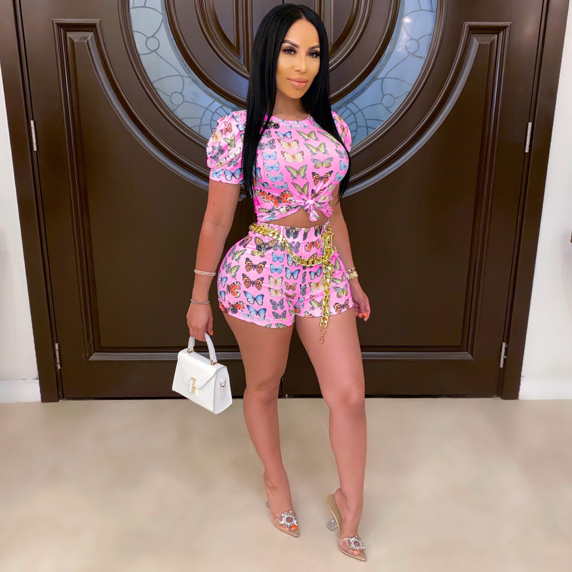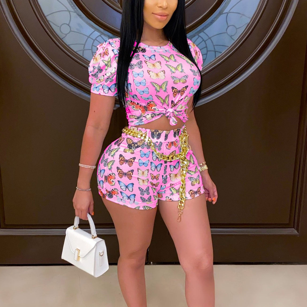 X00433S 2021 women's t-shirts butterfly prints sets shorts two-piece set