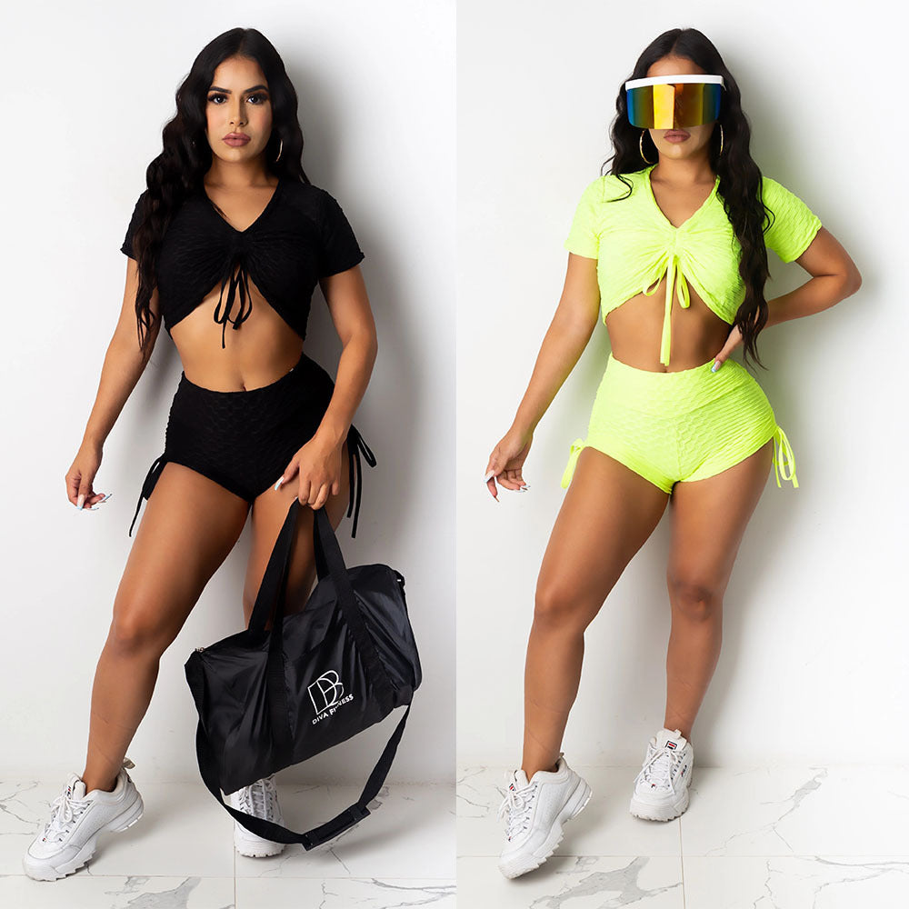 X00463L Phoenix New arrival sport women two-piece set+two-piece club suit with chest and short sleeves