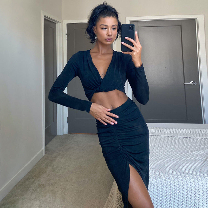 X00526L Phoenix New arrival sport women two-piece set+Crop sexy T-shirt high waist buttock skirt casual suit