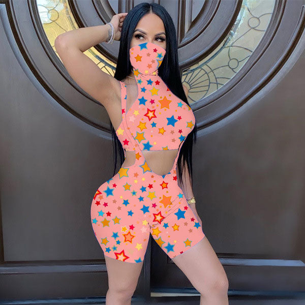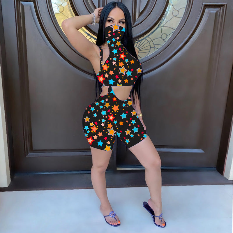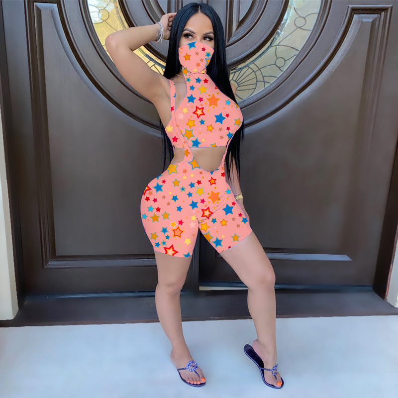 X00539S 2021 women fashion playsuit see-through gauze two-piece sets club tan