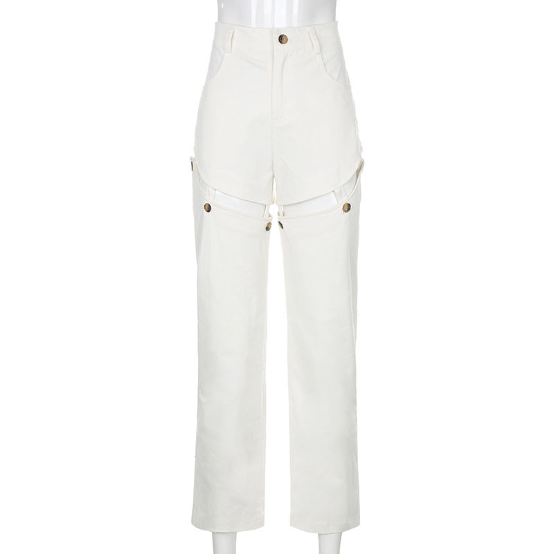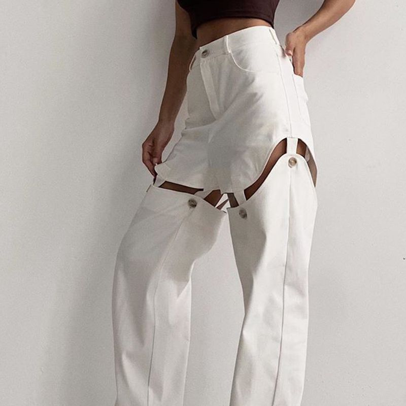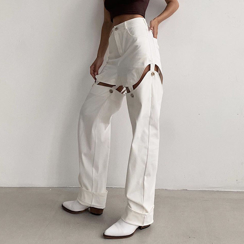 X00551M Autumn 2021 new women's wear featured button hollowed-out detachable loose straight pants casual pants