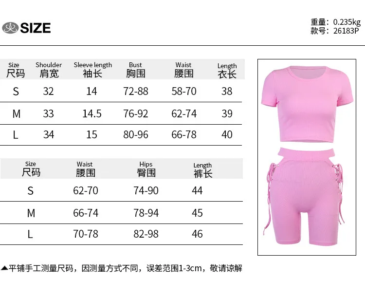 X01416C tracksuit women casual ribbed sporty solid matching set short sleeve+bandage hollow out biker shorts stretchy slim